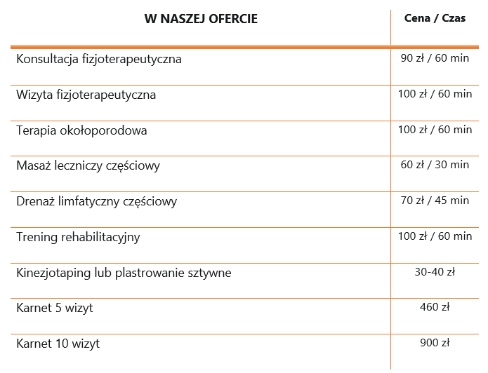 Zajmujemy się wszelkiego rodzaju dysfunkcjami układu ruchu, układu nerwowego czy układu limfatycznego. Pracujemy z pacjentami o małej aktywności ruchowej, jak również z wieloma sportowcami. Rehabilitujemy po zabiegach i pobytach w szpitalu. Pomagamy pacjentom po przebyciu COVID-19 wrócić do stanu przed chorobą i usprawnić pracę układu oddechowego. Radzimy jak ćwiczyć, by w optymalnym czasie przywrócić waszą sprawność lub w profilaktyce kontuzji podczas treningu. Przynosimy ulgę również kobietom w ciąży i po porodzie.